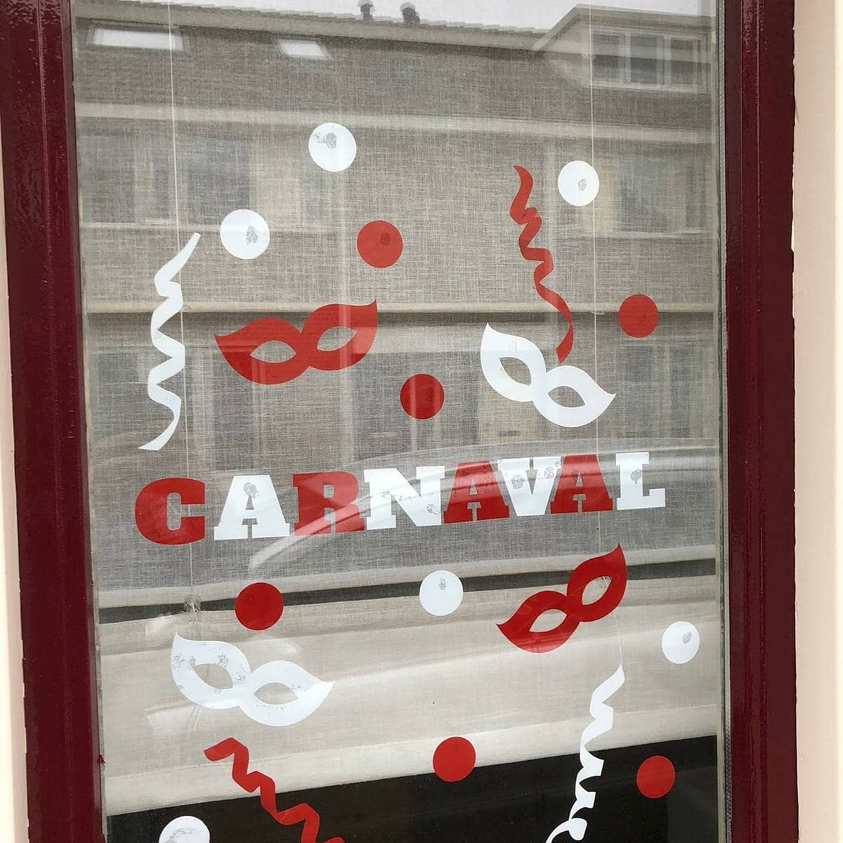 De teksten zijn in spiegelbeeld. Dit omdat je het binnen aanbrengt en buiten dus leesbaar kunt zien.